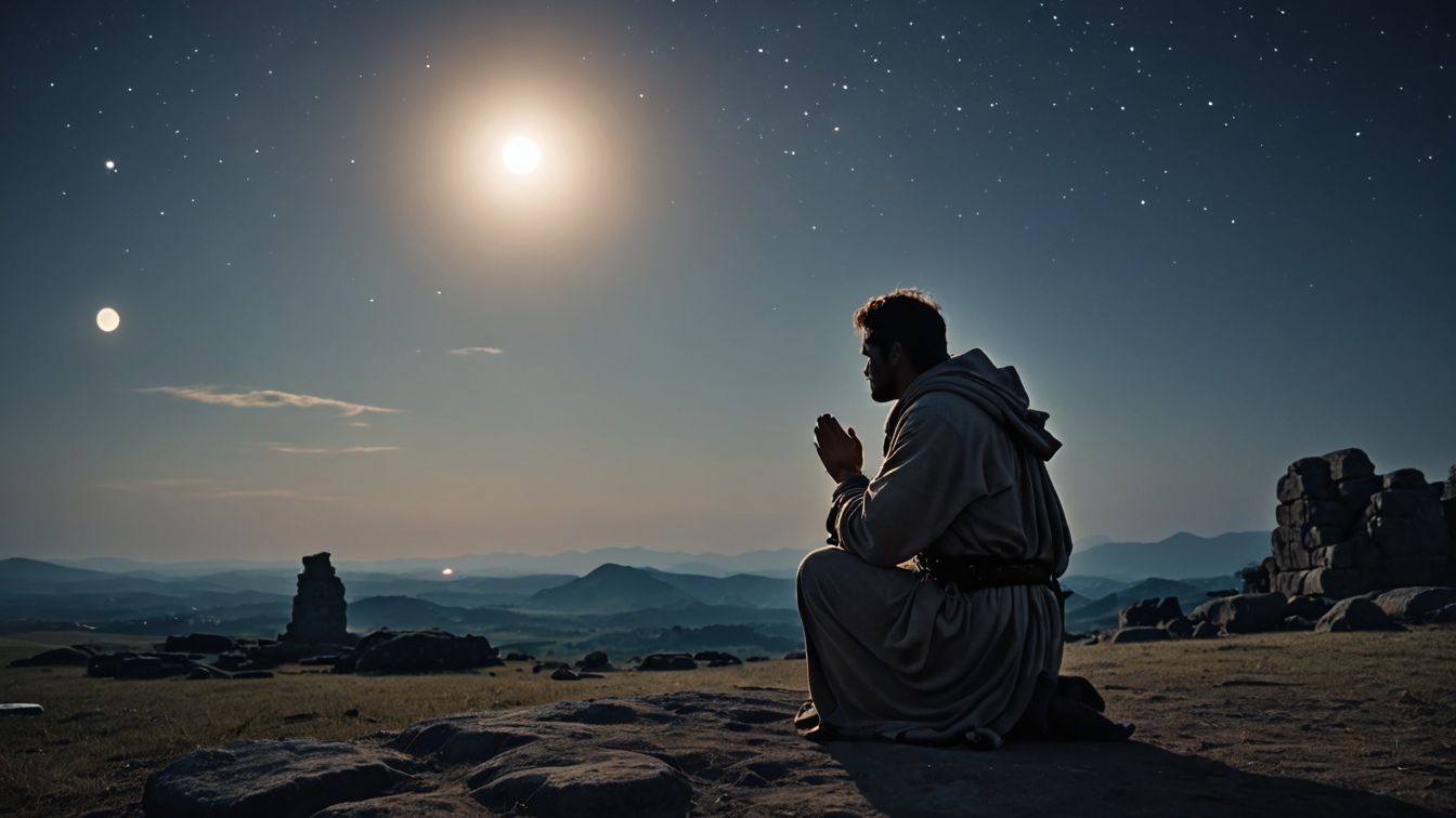 여호수아 10장 12-14절에 기록된 이 기도는 기브온 전투 중에 벌어진 기적입니다. 이스라엘이 기브온을 도우러 가는 길에 아모리 왕들과 전투를 벌일 때, 여호수아는 전쟁을 끝내기 위해 태양과 달이 멈추기를 간구했습니다.